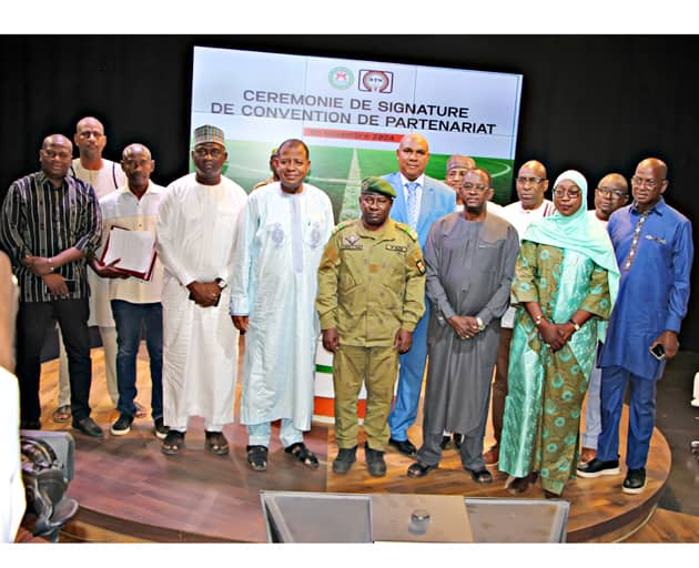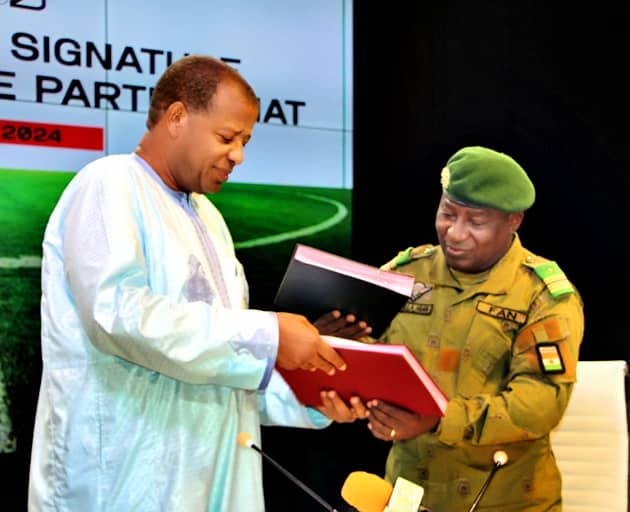 Ce sont les premiers responsables de ces deux institutions, à savoir M. Abdoulaye Coulibaly, Directeur Général de la RTN et le Colonel-Major Djibrilla Hima Hamidou dit Pelé, président de la FENIFOOT, qui ont apposé leurs signatures pour faire aboutir cette convention dans le but de promouvoir et développer le football nigérien.