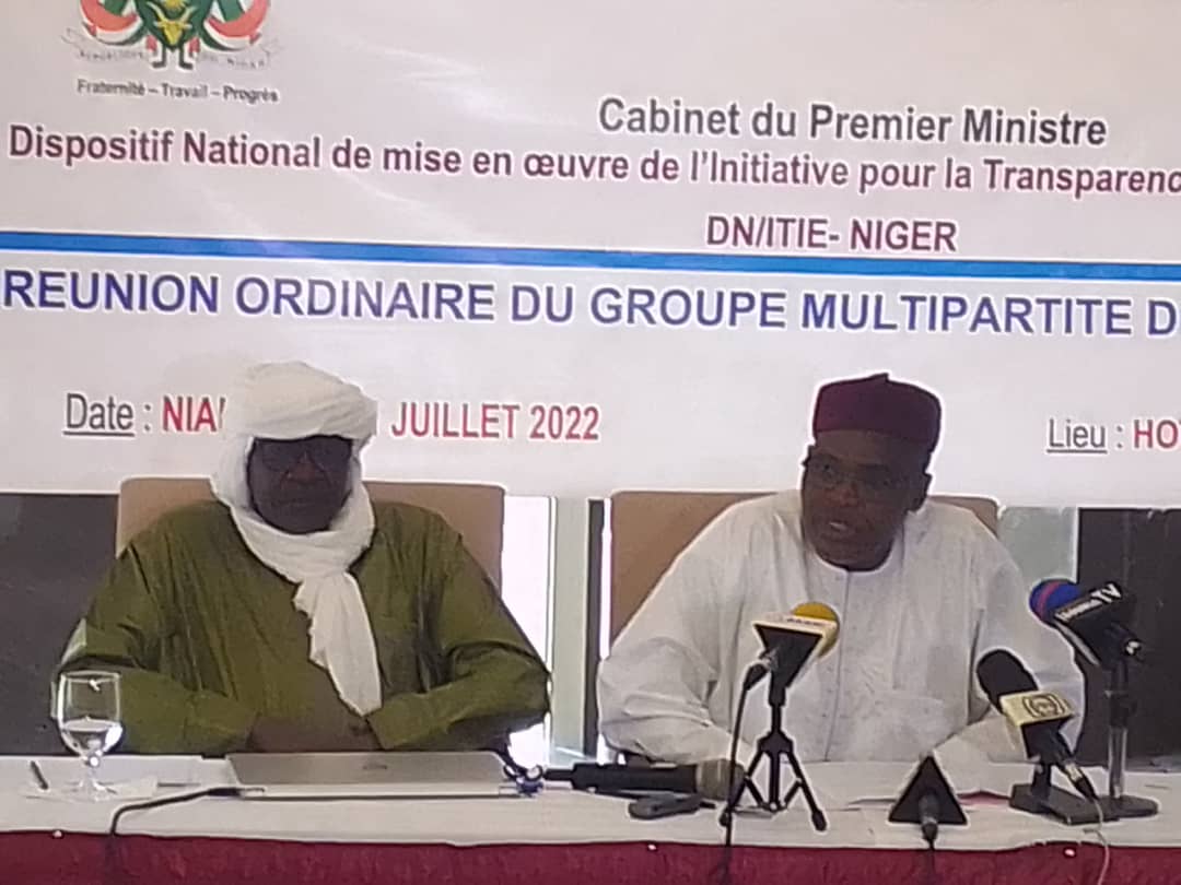 Le Groupe multipartite du Dispositif national de l’Initiative pour la transparence dans les industries extractives (GMC-DN ITIE) du Niger a tenu le jeudi 21 juillet 2022 à Niamey, sa session ordinaire. Au cours de cette réunion présidée par le Directeur de cabinet du Premier ministre, président du GMC, les représentants de l’Etat, des entreprises extractives et de la société civile se sont penchés sur les différents points inscrits à l’ordre du jour de la session.